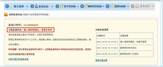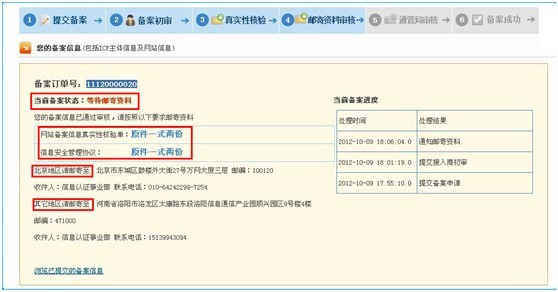 第四步:郵寄資料核對成功 第五步:提交管局審核 第六步:備案成功 | |