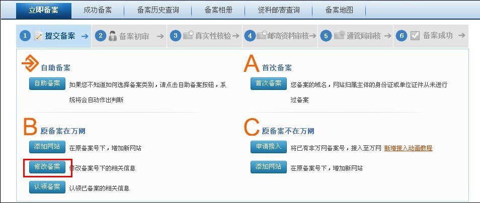 第一步:點擊“修改備案”按鈕