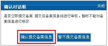 點擊“繼續(xù)下一步”彈出提示:是否確認提交備案信息?