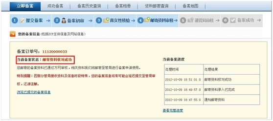 第七步:備案成功