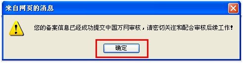 點(diǎn)擊“提交審核”后,彈出提示信息:已成功提交萬(wàn)網(wǎng)審核,客戶無(wú)法再進(jìn)行修 改操作。